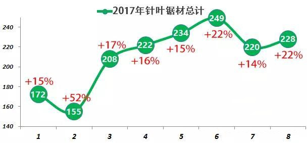 除去以上種類,其他品種的針葉、松木鋸材前8月累積進口291萬立方米,較去年同期增長18%.