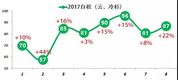 8月白松(云、冷杉)進口87萬立方米,較去年同期增長22%;