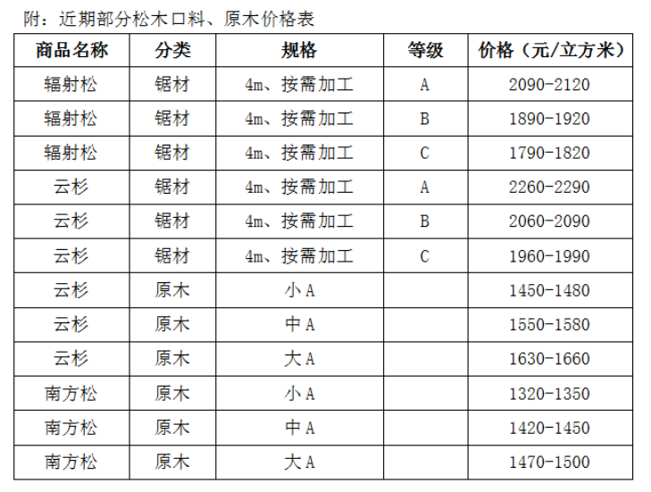 ? ? 可以預見,在接下來的時間里,松木木材的價格將有進一步上漲的可能,期待松木能短時間內降價不大現實。因此,建議市場各方人士多做觀望,適時采購。