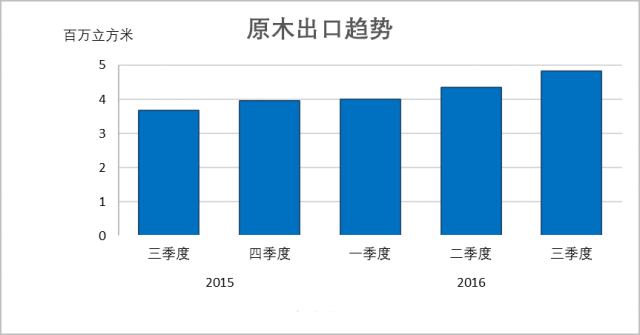博裕木材進口報關行獲悉,第三季度,新西蘭針葉材原木出口迎來飛躍,創下483萬立方米的出口新紀錄,也是連續第四個季度的上漲。第三季度的出口量環比上漲11%,與去年同期相比飛升34%。2016年前三個季度,新西蘭原木出口已達到1310萬立方米,相比2015年同期增幅達到14%。
